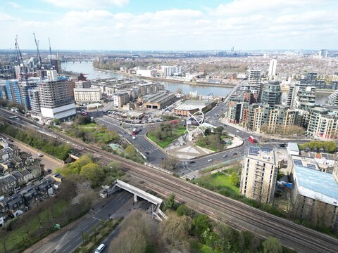 Wansworth southwest London UK Drone, Aerial, .Wansworth southwest London river Thames in background  UK Drone, Aerial, ..