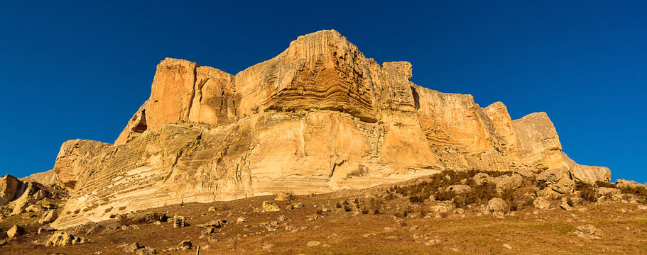 Alimova Balka Mountain, illuminated by the evening sun, Bakhchisaray district, Crimea, Russia