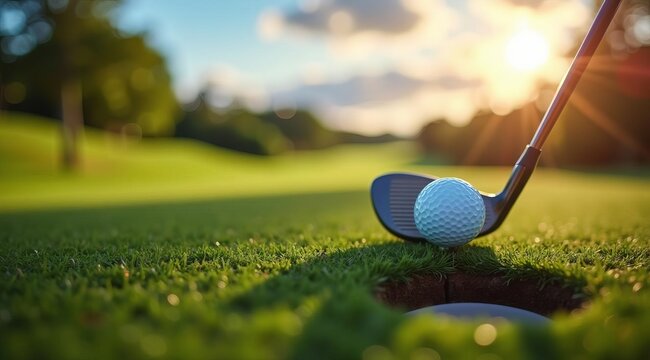 Indoor Golf Putting Setup with Putter and Golf Ball on Artificial Turf in Virtual Environment