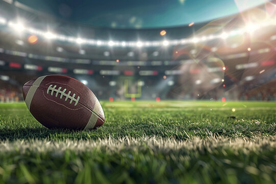 American football ball on the field in the stadium