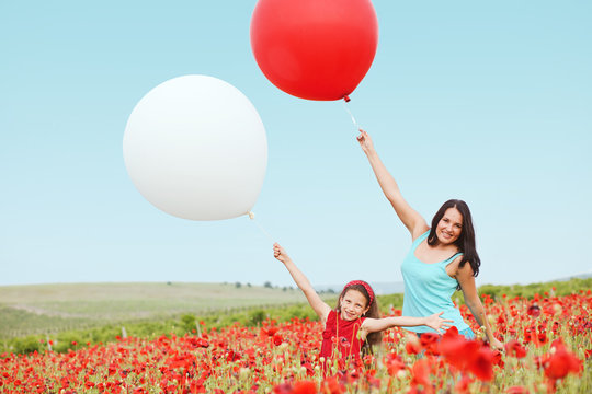 Happy children and their parents entertain and have fun with color balloon on kids birthday party