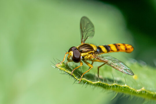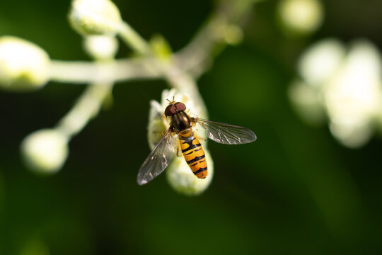 Marmalade hoverfly Episyrphus balteatus insect flight