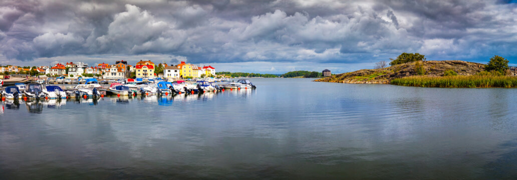 Panorama of Karlskrona, Sweden with Stakholmen island on Baltic sea and harbor