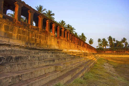 Pillar along lake of Banashankari temple, Badami