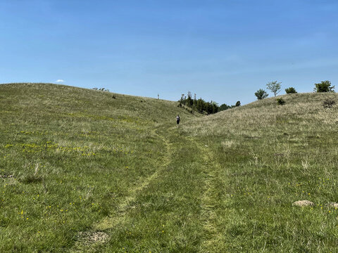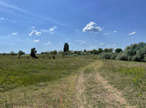 Weg durch Wiesen und Hügel in der Banater Sandwüste, Vojvodina, Serbien