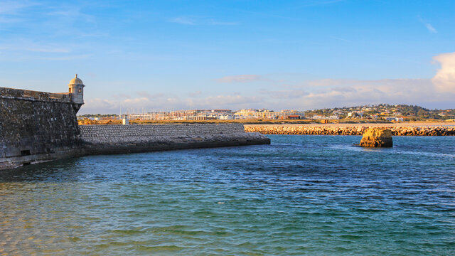 Forte da Ponta da Banderia- Lagos Fortress and waterfront in Algarve, Portugal