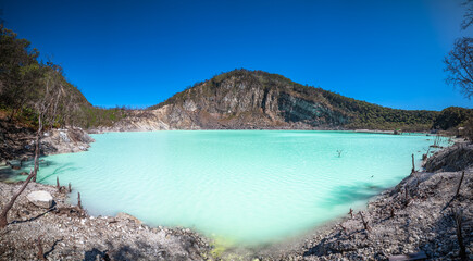 White crater or Kawah Putih sulfur lake in West Java, Near Bandung city, Indonesia..