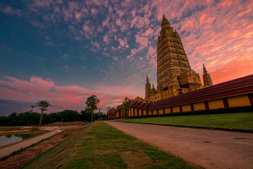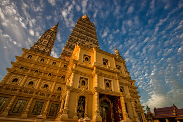 Wat Bang Thong(Wat Mahathat Wachiramongkol), a beautifully sculptured temple in good design, popular tourists worship and worship, located in Tambon Na Nuea, Amphoe Ao Luek, Krabi.