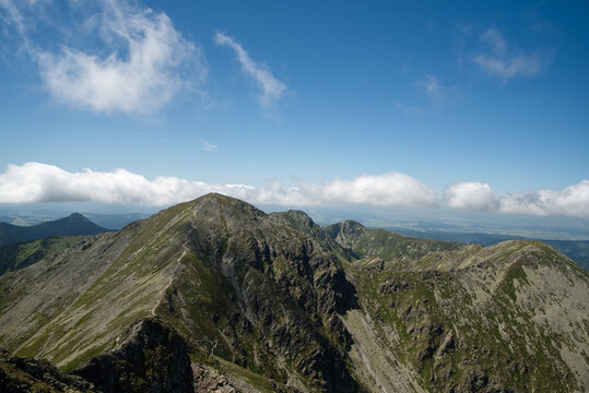 View from Banik mountain peak in Rohace mountain group in Western Tatras mountains in Slovakia
