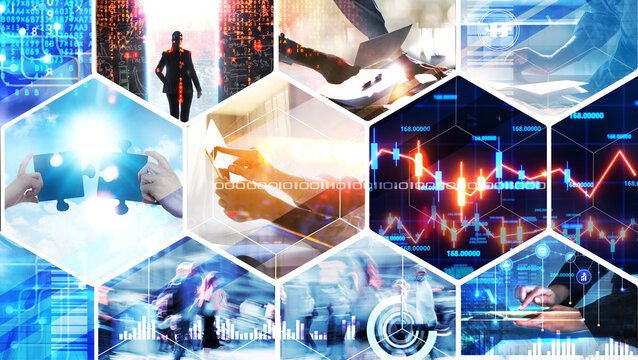 Business and finance planning data analysis, innovative investment strategies, and digital technology to foster economic growth and achieve sustainable digital market leadership in competitive