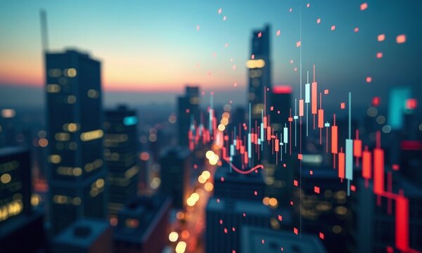 Modern bank building glass facade urban skyline evening light teal, gold hues. Reflection of city buildings at sunset. Business district architecture, financial institution, office space, business