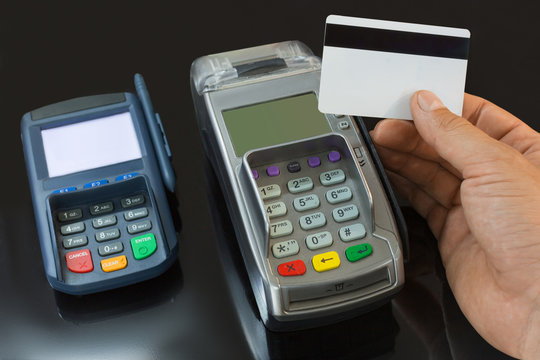 Entering mobile banking login while holding credit card, security overlay for cybersecurity