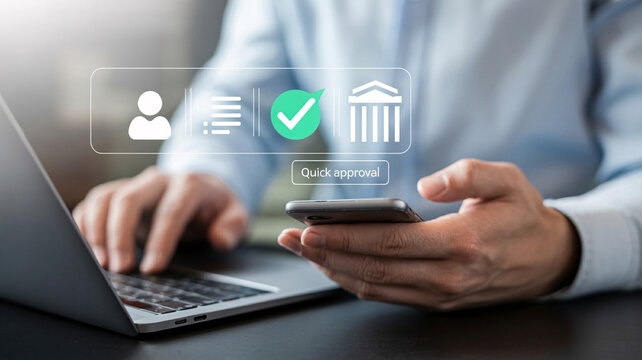 Get quick approval online using laptop and phone, modern business technology and finance concept