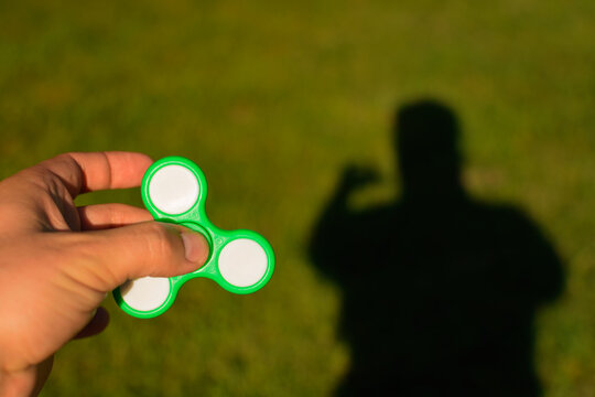Hands holding popular fidget spinner toy. fidgeting spinner