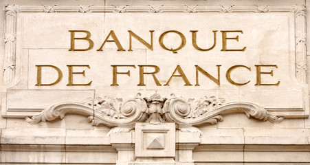 Façade du siège de la Banque de France à Paris, à l'Hôtel de Toulouse, avec un drapeau français et un drapeau européen (France)