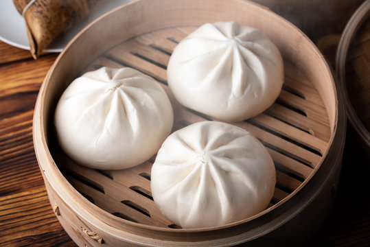 Gua bao, steamed buns in bamboo steamer, bao buns.