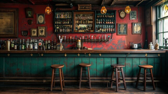 Spacious Bar interior vintage loft. Interior ireland. Generate Ai