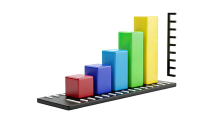 A colorful bar graph with a heart on top isolated on transparent background