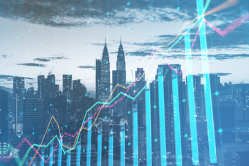 Futuristic holographic bar chart and line graph in digital space