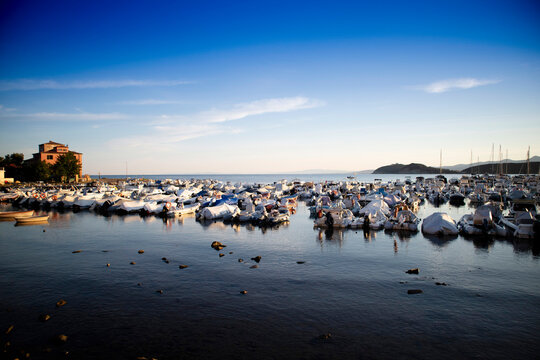 Photographic shot of the small port of Baratti in Tuscany