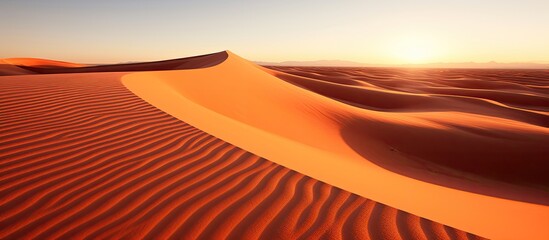 Glowing sand dune ridge stretching across golden desert at low sun revealing ripples
