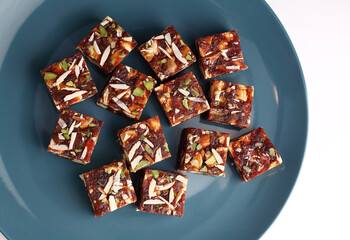 Khajur barfi made from dates, dry fruits, and seeds, rich in nutrients and dietary fiber