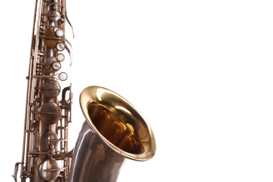 Saxophone detail close-up macro on white background