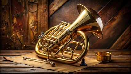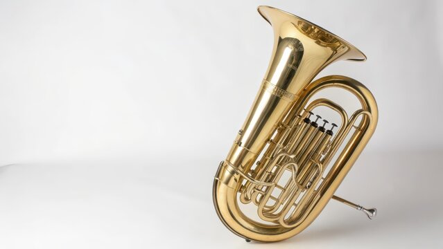 Beautiful baritone wind instrument resting against a neutral backdrop showcasing its shiny brass finish and intricate design features