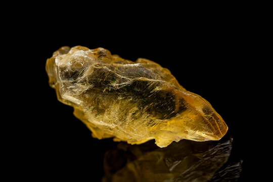 Natural rough golden baryte (barite) mineral crystal on dark background, Gemstone and main source of barium (chemical element) (selective focus)