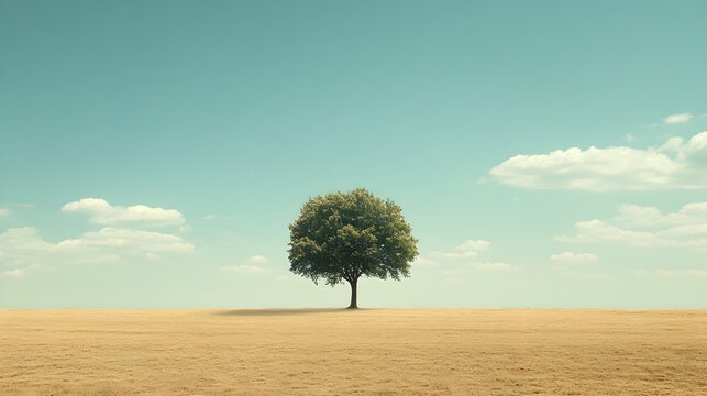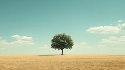 lone tree stands resilient in a vast desert as strong winds sweep across the barren landscape, creating a poetic scene of endurance, isolation, and the force of nature