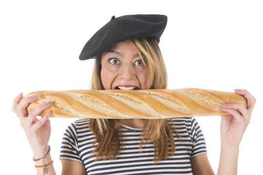 French young girl with typical bread