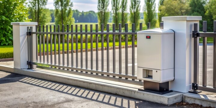 Automatic Gate with Concrete Pillars and Metal Slats, Security , Fence , Gate , Automation