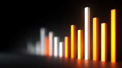 Abstract representation of glowing bars in various heights symbolizing growth, success, and progress against a dark background for data visualization