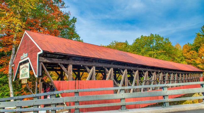Bartlett, NH - October 13, 2015: Wooden Bridge on a sunny autumn day