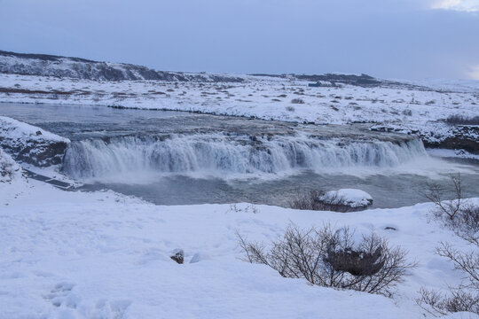 Geothermal fields Hverir. Spectacular landscape of volcanic terrain with geothermal activity in Iceland, nearby famous Hot Spring Gaysir and Strokkur, Golden Circle tourist itinerary.