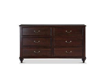 Old English antique oak dresser sideboard base with brass handles isolated with clip path