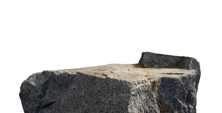 Rock stone with natural platform isolated on white background.Rough textured granite slab pedestal podium for product display,Sea stone nature mockup with light shadow for cosmetic,clipping path