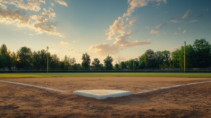 A baseball diamond infield with dirt and bases, outdoor setting with soft twilight, Classic style