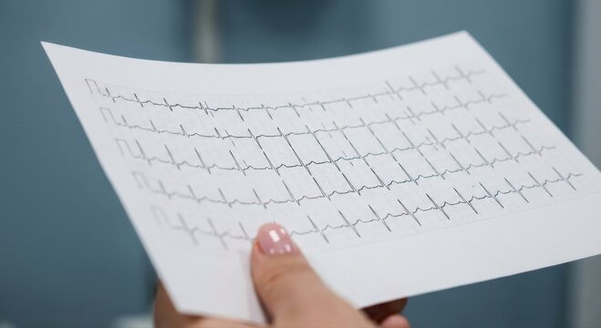 Hand Holding Paper Printout of Electrocardiogram Showing Heart Rhythm and Activity Monitoring in Medical Environment