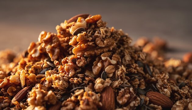 Pile of healthy granola with nuts and seeds