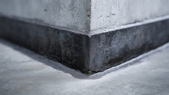 Foundation worker installing waterproofing membrane on basement walls. Protection and longevity