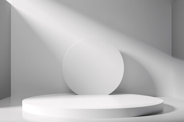 a white circle leaning against a white wall. The circle is flat and opaque, and it has a smooth, matte finish. There are no shadows or other objects in the image.