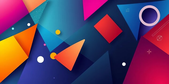 Vibrant geometric shapes composition with a cube, sphere, cylinder, and arch on a dark background for a modern minimalist design