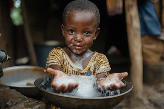 A child washes his hands before eating - the basics of hygiene.