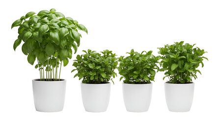 Four Potted Basil Plants Isolated Green Fresh Growth
