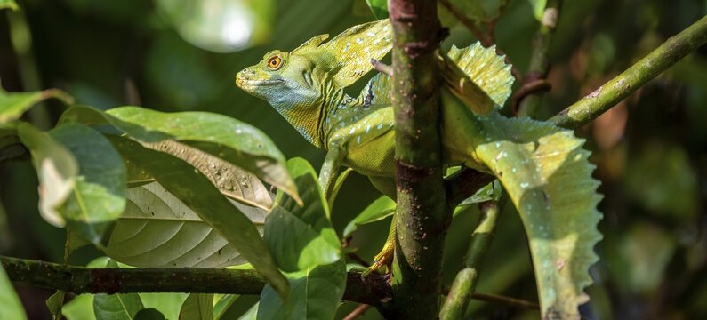 Green basilisk (Basiliscus plumifrons) in Tortuguero National Park (Costa Rica)