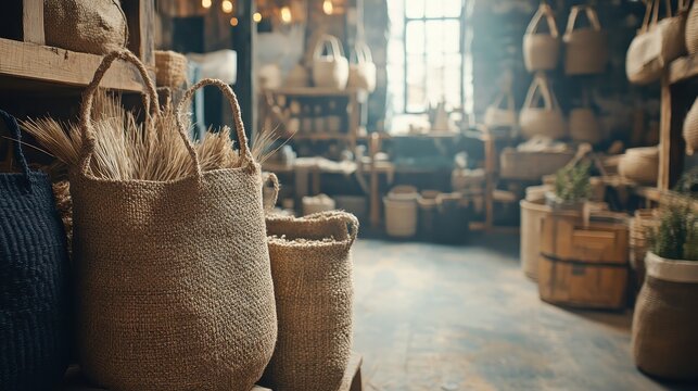 handcrafted wicker basket colored with ethnic and African earth colors on a white background. Detail of a circular straw bowl decorated with ethnic motifs. African handmade craftsmanship example set