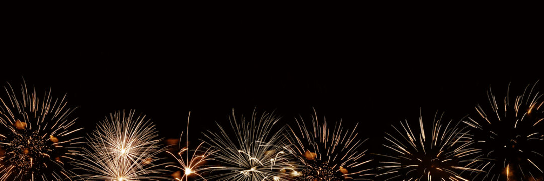 Fireworks panoramic background with copyspace, Christmas new year and holiday night party web banner