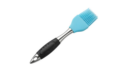 Blue silicone basting brush with wooden handle for kitchen cooking, baking, and grilling isolated PNG with Transparent Background