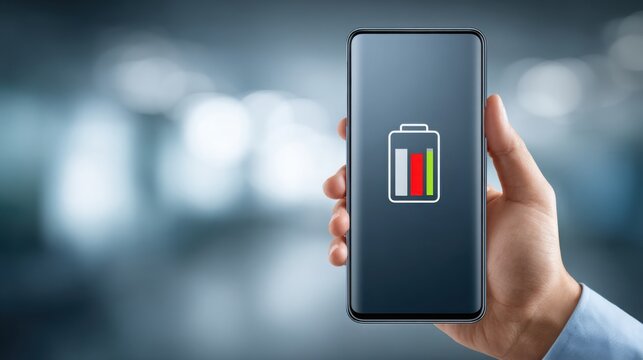 Modern smartphone with digital battery indicator touchscreen display sleek design portable electronic device innovative technology user-friendly interface and wireless connectivity